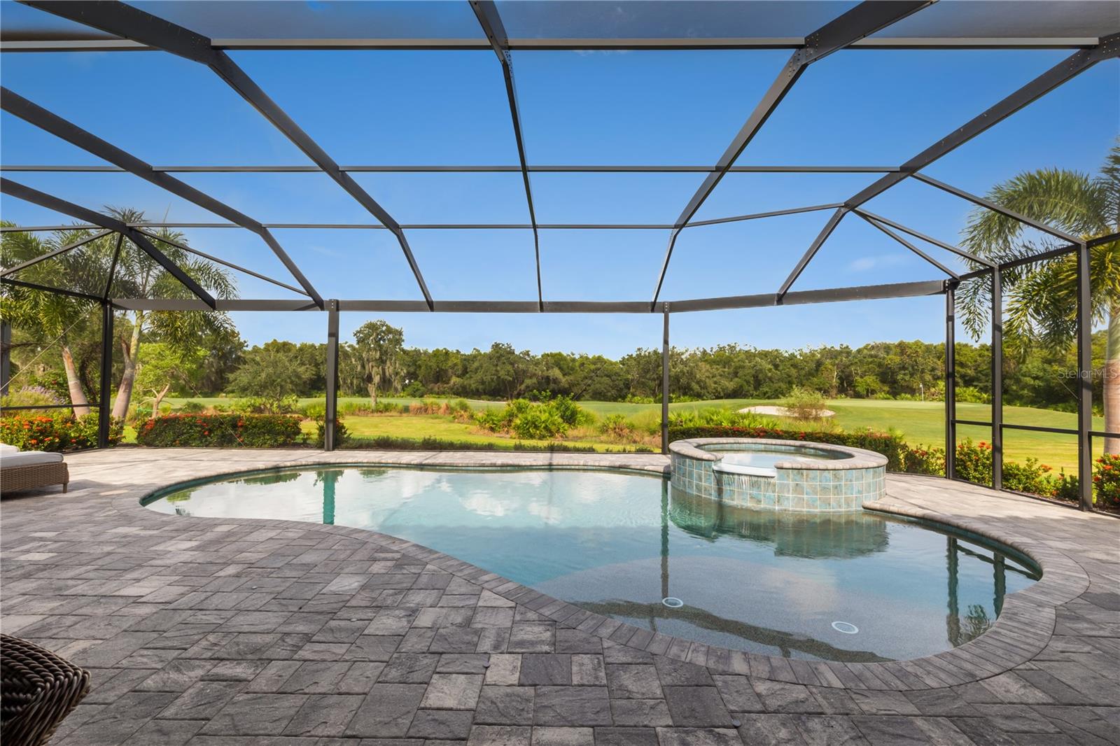 MASSIVE PRICE IMPROVEMENT! *SAVE OVER $250K* and discover Luxury Living in this meticulously maintained pool home that offers sweeping views of the 8th green, fairway and water located in the highly sought after community of Esplanade Golf and Country Club at Lakewood Ranch!  Now Offered at $1,349,000 with a 1% Lender Credit for Down Payment or Closing Cost Assistance (with our preferred lender).  This immaculate Pallazio Model Home is the epitome of sophisticated Florida living. This move-in ready 4-bedroom, 3-bathroom pool home with a private office exudes elegance and style from the moment you enter.  Step through the grand double glass doors into a breathtaking foyer where soaring 10-foot high ceilings and stunning architectural details set the tone. The home is meticulously maintained, featuring hurricane windows and engineered hardwood flooring throughout, complemented by ceramic tile in the bathrooms. The tray ceilings in the living room and primary bedroom further enhance the home's luxurious aesthetic.  The chef-inspired kitchen is an absolute highlight, showcasing white cabinetry, quartz countertops, a custom tile backsplash, and premium stainless-steel appliances including a dual oven, gas cooktop, wine fridge, and ample pantry space. Open to the living and dining areas, this space is perfect for both intimate gatherings and large-scale entertaining. Sliding glass doors open directly to the screened-in pool deck, where you'll find an outdoor kitchen and awe-inspiring views of the 14th green.  The home's timeless charm is accentuated by its barrel tile roof and plantation shutters throughout, adding both sophistication and function. The luxurious master suite is a true retreat, featuring a spacious walk-in closet with built-ins and a spa-like master bath with double vanities, a large shower, and elegant ceramic tile floors.  Each of the three guest suites is generously sized, offering comfortable and private spaces, with one suite featuring an en-suite bathroom. The large laundry room provides added convenience for day-to-day living.  The outdoor living space is equally impressive, with a paver deck that wraps around the large pool (approximately 30 feet by 12 feet) - the perfect spot to relax or entertain while enjoying panoramic views of the golf course. The 3-car garage offers a tandem space for golf cart parking and additional storage.  As a resident of Esplanade Golf and Country Club, you'll enjoy unparalleled resort-style amenities including two clubhouses, each with its own fitness center and pool, plus a main clubhouse featuring a culinary center, a heated lagoon-style pool with private cabanas, Bahama Bar, Barrel House Bistro, a full-service spa, tennis and pickleball courts, bocce ball, walking trails, and a dog park. The second clubhouse also features a resistance pool. This is a golf-deeded home, offering access to the exclusive golf course and all its benefits.  Don't miss your chance to experience the best in luxury living at Esplanade.